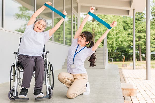 全身体操や計算・文字課題などの脳トレ、口腔体操で昼食前の準備をします。
